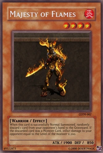 Text When this card is successfully Normal Summoned, randomly discard 1 card from your opponent's hand to the Graveyard. If the discarded card was a Monster Card, inflict damage to your opponent equal to the Level of the monster x 200.